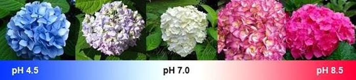 Esta propiedad de las antocianinas de cambiar de color en función del pH es también utilizada en jardinería para modificar los colores que presentan las flores de las hortensias. Modificando el pH del suelo de cultivo y en presencia de sales de aluminio podemos obtener flores de diferentes colores.