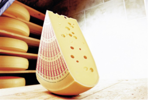 La explicación de que el gas, anhídrido carbónico, CO2, era el único implicado en la formación de ojos en el queso suizo Emmental se consideró correcta hasta que a mediados de los años 90 del siglo pasado, los productores de queso Emmental suizos empezaron a observar una disminución drástica de la cantidad y tamaño de agujeros de los quesos, lo que motivó una gran preocupación. ¿Os imagináis un queso Emmental sin agujeros?. Este hecho coincidió con la incorporación de mejoras higiénico-sanitarias de la leche, que se utilizaba para la fabricación del queso y en especial en las técnica de ordeño, que pasó de ser manual y en cubas abiertas a ser mecánica y en sistemas cerrados. Otra observación fue que los quesos elaborados en invierno tenían más abundancia de agujeros y eran de mayor tamaño que aquellos que eran fabricados en verano. Estos hechos pusieron sobre la pista de esta “anomalía” a los investigadores del Instituto sobre la Ciencia de los Alimentos Agroscope con sede en Berna, lo que permitió resolver este misterio. Según estos investigadores de este instituto, las minúsculas partículas de heno que se acumulaban en los cubos cuando se ordeñaba de forma manual eran las responsables de este efecto. Estas micropartículas de heno contienen una pequeña cantidad de aire, que constituyen puntos de nucleación en la formación de agujeros y que van aumentando de tamaño a medida que las bacterias ácido-propiónicas y las ácido lácticas producen gas carbónico. Estas partículas de heno son las que determinan la distribución y número de agujeros del queso. Sin partículas de heno el anhídrido carbónico escapa al exterior del queso, es decir las micropartículas de heno son las inductoras de los ojos, agujeros típicos de este queso. Actualmente los fabricantes suizos de queso Emmental controlan la cantidad y tamaño de los agujeros del queso en función de la cantidad de micropartículas de heno que añaden a la leche.