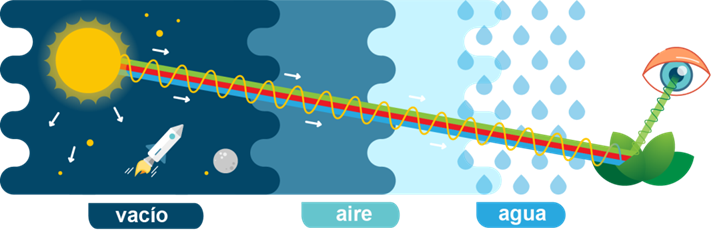 La luz, al igual que el sonido, presenta un comportamiento ondulatorio y se propaga por ondas, pero al ser las de la luz de naturaleza electromagnética lo hacen tanto en el vacío como en el aire o en el agua.