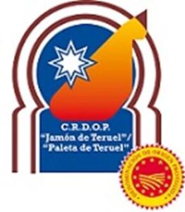 Se marca en la corteza de la parte posterior del Jamón o la Paleta y es una estrella de 8 puntas grabada a fuegoa la que acompaña la palabra TERUEL.