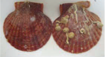 Las vieiras (P. maximus y P jacobeaus) de valva plana y la otra cóncava, se obtienen las semilla y se hace un preengorde en batea, seguidamente se entierran en la arena para su desarrollo, proceso que abarata costes.