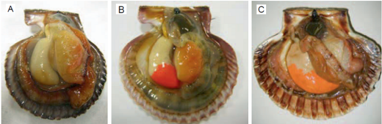 Las gónadas son muy diferentes, las de las zamburiñas el ovario es más oscuro, mientras el testículo es más blanquecino o beige; los ovarios de las volandeiras al igual que las de las vieiras, son de color anaranjado, mientras que las de las vieiras del Pacífico son prácticamente rojas.